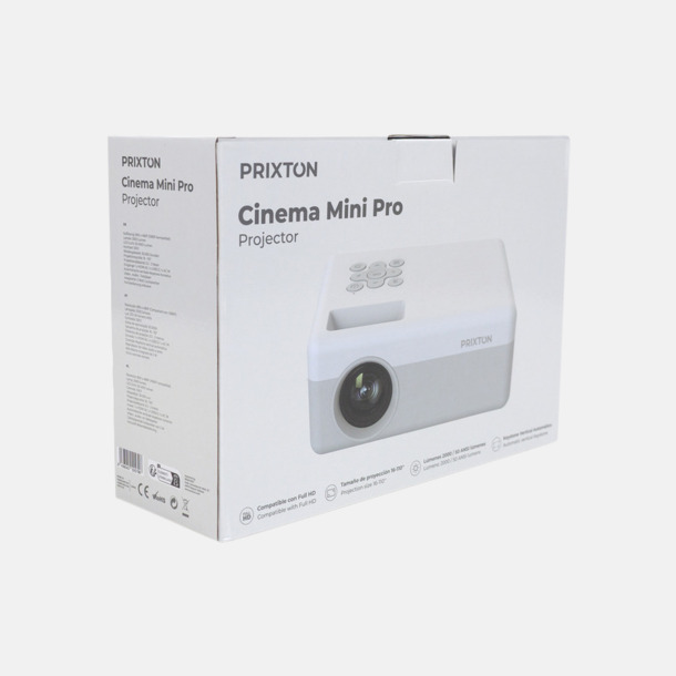 Cinema-projektor Mini Pro är en liten projektor som tar bioupplevelsen till dig. Den projicerar en skarp bild från 16 till 110 tum och stöder 1080p-innehåll. Med en HDMI-port för streaming-enheter med en inbyggd högtalare är den en enkel allt-i-ett-lösning för underhållning i alla miljöer, även med svagt ljus.