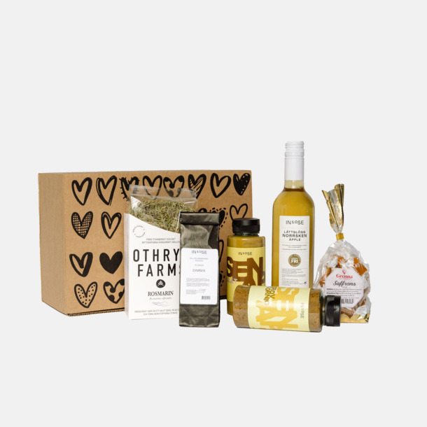 En smakrik gåvolåda fylld med saffranskolor, frisk glögg och två sorters senap, en grovkornig för julskinkan och en söt, slät variant till lax eller röding. Dessutom ingår en kryddblandning för sillinläggning samt aromatisk, torkad rosmarin från Grekland. Perfekt för både julbordet och vintermatlagningen.