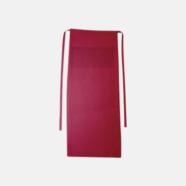Långa serveringsförkläden (100 cm) i många, fina färger. Förklädena klarar tuffa arbetsmiljöer med förstärkta utsatta punkter och tål industritvätt. Har en praktisk framficka. Beställ barförkläden med eget tryck eller brodyr.
