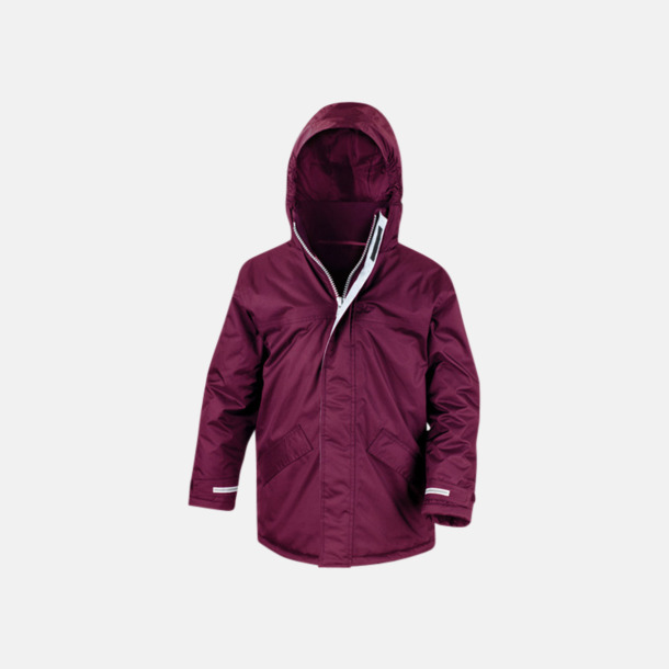 Långa jackor för vuxna och barn som består till mer än 25 % av återvunnet material. Vinterjackorna är vind- och vattentäta och har en dold huva i kragen. Barnmodellen har reflexdetaljer på ärmar och rygg. Beställ recycle parka jackor med egen logga.