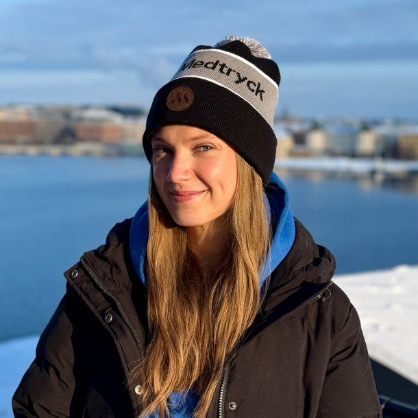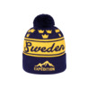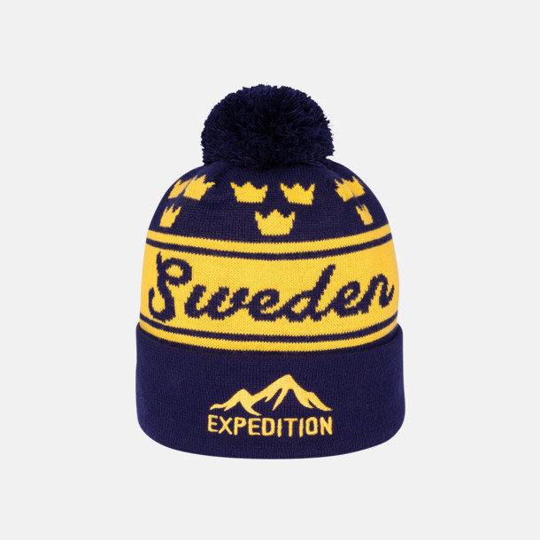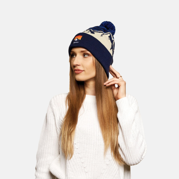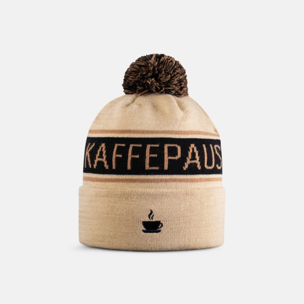 Slätstickade pompommössor med egen design. Välj mellan en mängd lagerförda garnfärger, eller få dina mössor med helt egen pms-färg från 150 st. Mössorna tillverkas i EU och är OEKO-TEX-certifierade. Det finns en mängd exklusiva dekorationer att välja på, bland annat brodyr, 3D-brodyr, vävda märken eller lädermärken.