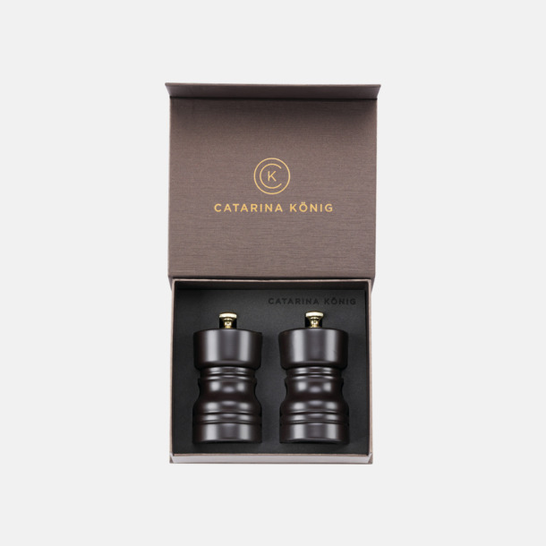 Elegant set med mörkbruna salt- och pepparkvarnar designade av Catarina König. Den tidlösa designen med matt finish gör dem till ett stilfullt inslag i både kök och på matbordet. Saltkvarnen har ett keramiskt verk och pepparkvarnen ett kraftfullt verk i carbonstål för lång hållbarhet och effektiv malning. Levereras i en exklusiv presentkartong.