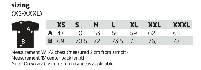 - Herr: XS, S, M, L, XL, XXL, 3XL