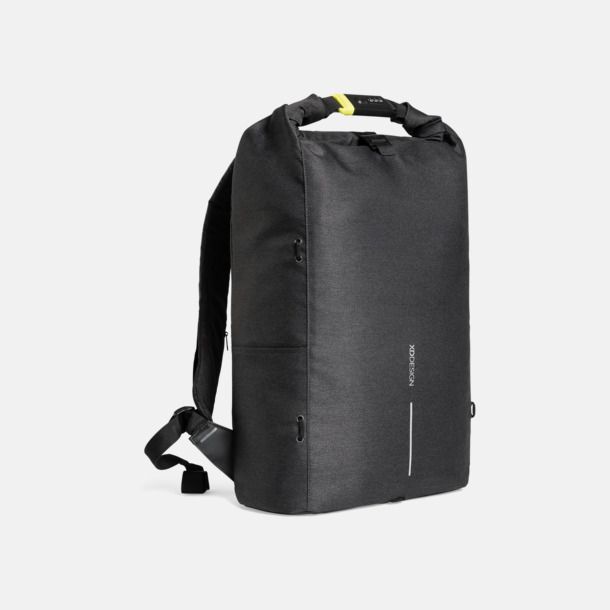 Ryggsäckar med egen logga. Moderna och säkra ryggsäckar med flera praktiska funktioner. Huvudfacket har rollstängning med stålförstärkt kombinationslås som innehåller laptopfack (max 15.5"), fack för surfplatta (max 12.9") och flera meshfack för andra tillhörigheter. Det finns även flera kortfack med RFID-skydd vilket stoppar elektroniska ficktjuvar. Beställ antificktjuv laptopryggsäckar med eget tryck.