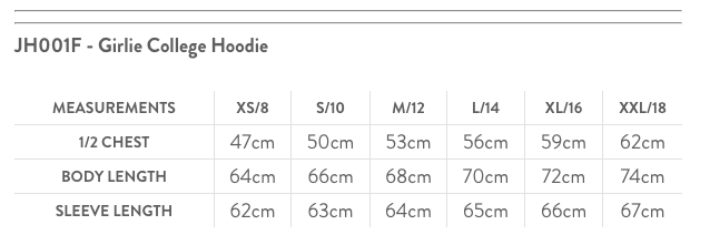 - XS (8), S (10), M (12), L (14), XL (16), XXL (18)