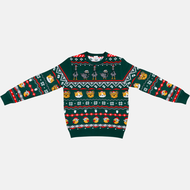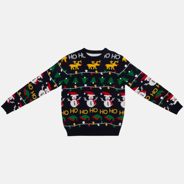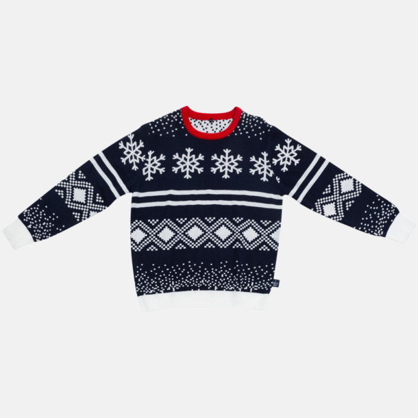 Våra mysiga och varma jul- och vintertröjor kan personanpassas in i minsta detalj. Stickas enligt dina önskemål i upp till sex olika färger. Välj mellan traditionella julmönster, företagslogotyp eller ett helt eget designförslag. Utöver mönster och färger kan även etiketter skräddarsys, från tvättetikett till hals- eller ärmetikett. För en extra unik touch finns tillval som PU-etiketter och brodyr. Resultatet blir en tröja som inte bara är varm och bekväm, utan också personlig och minnesvärd. Den perfekta gåvan och ett starkt uttryck för ert varumärke.
